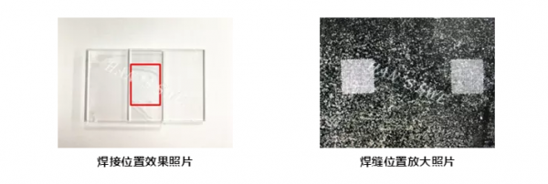 通過(guò)測(cè)試,常見(jiàn)的玻璃如鋁硅酸鹽玻璃、硼硅酸鹽玻璃、鈉鈣硅玻璃、熔融石英等均可實(shí)現(xiàn)焊接,焊后焊縫無(wú)裂紋,焊接表面無(wú)損傷。