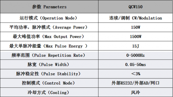 銳科150W QCW準(zhǔn)連續(xù)光纖激光器技術(shù)參數(shù)