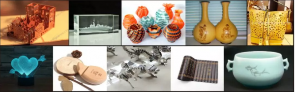 文創(chuàng)類作品:運用激光切割、激光焊接、激光打標、激光打孔、激光熔覆&3D打印、激光雕刻等六個方面先進加工技術,通過不同載體深刻表達中華文化、城市文化以及傳承我國珍貴的非物質文化等文創(chuàng)作品。