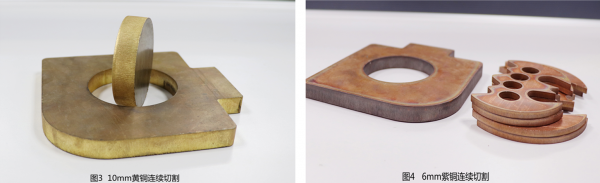 由于紫銅具有良好的導熱性,在切割過程中材料的邊緣會產(chǎn)生嚴重的熱影響區(qū)。為了減少切割的熱影響痕跡,通常會采用空氣進行切割,但其切割效率低且切割斷面粗糙。為了解決紫銅的切割質(zhì)量和效率問題大科激光改用氧氣切割,不僅切割效率提升了200%,而且切割斷面光滑;同時,通過改變激光器的出光模式,可以明顯的減少切割邊緣的熱影響區(qū)。目前,大科激光2kW抗高反型單模單諧振腔光纖激光器可以實現(xiàn)不銹鋼、鋁合金、黃銅的最大切割厚度為10mm,紫銅的最大切割厚度為6 mm,也是唯一能實現(xiàn)4mm紫銅連續(xù)長時間無報警高質(zhì)量切割,切割邊緣無明顯熱影響痕跡的激光器。DK-YSM2000AR單??垢叻催B續(xù)光纖激光器可兼顧薄板的高速切割與中厚板的亮面切割,實測薄板切割能力明顯優(yōu)于3000W多模產(chǎn)品,并可實現(xiàn)長時間無誤警連續(xù)切割高反射金屬材料。