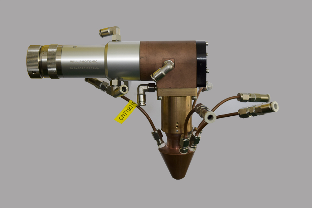 輝銳自主研發(fā)的內(nèi)孔激光熔覆頭適用于激光功率4kW,可作業(yè)于管道內(nèi)徑≥φ75mm,深度≤300mm的工件中。聚焦鏡可在0-6mm范圍內(nèi)調(diào)距。激光功率傳輸效率更高且穩(wěn)定,采用同軸環(huán)形噴嘴,出粉聚焦性效果好、粉末利用率高。