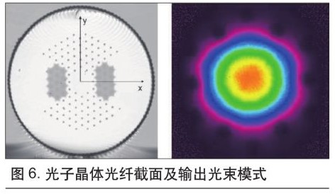 在功率放大器中,丹麥NKT Photonics公司的光子晶體光纖DC-200/40-PZ-Yb可用于數(shù)十微焦耳的飛秒光纖激光器(圖6)。這個(gè)光子晶體光纖的模場(chǎng)直徑達(dá)到31μm,雖然比普通單模光纖的芯徑大很多,但得益于其特有的光纖結(jié)構(gòu),仍然可以保證基模輸出。