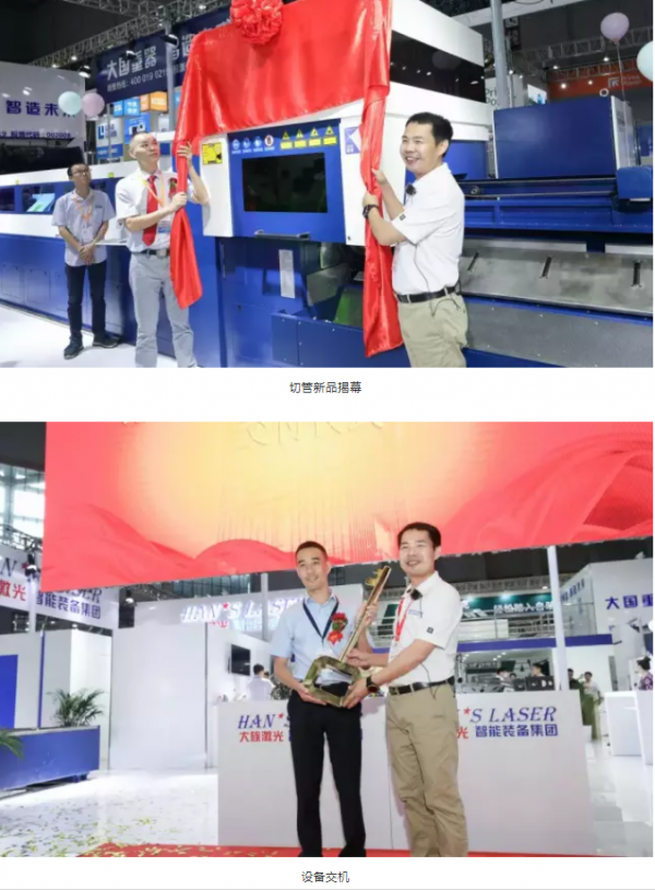 大族激光智能裝備集團陳焱總經理和武漢鑫宏盛聯(lián)不銹鋼有限公司范緒潮總經理共同按下設備啟動按鈕,開啟切管新時代,迎接智造未來。
