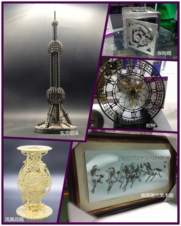 大族粵銘、金威刻、宏山激光、邦德激光、銘鐳激光等企業(yè)展位上也展示了各自的參賽作品。