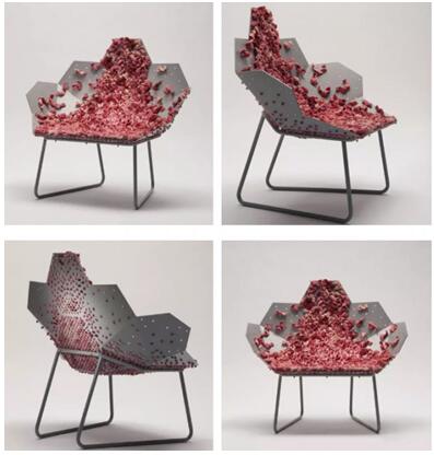 4.丹麥設(shè)計(jì)師SOFIE布倫納設(shè)計(jì)的腮紅椅子。椅子表面使用硬質(zhì)鋁殼制作,并利用激光切割技術(shù)處理座椅表面的穿孔,再配上軟軟的坐墊。整個(gè)設(shè)計(jì)集合了觸覺、感覺和視覺上的藝術(shù)效果。