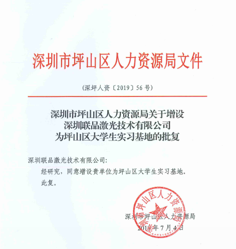重視人才培養(yǎng),聯(lián)品激光掛牌深圳坪山區(qū)大學(xué)生實(shí)習(xí)基地