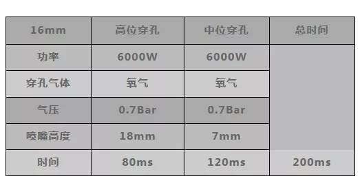 下表為快速穿孔測試詳細(xì)穿孔參數(shù)