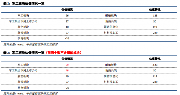 行業(yè)分析人士指出,目前,軍工板塊整體估值為 96 倍,處于歷史中低部水平。若剔除船舶板塊,軍工板塊整體估值為 69 倍,同樣處于歷史中低部水平。從上市公司屬性來(lái)看,軍工集團(tuán)下屬上市公司估值水平為 57 倍;分板塊來(lái)看,國(guó)防信息化板塊、船舶板塊估值與整體水平相近,材料及加工上市公司估值高于整體水平。