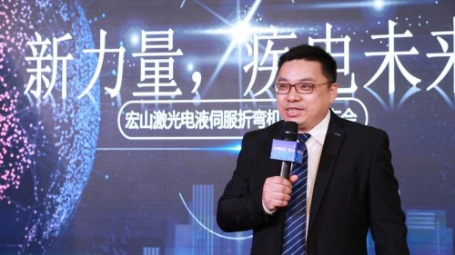 12月20日,宏山激光新力量,疾電未來——電液伺服折彎機新品發(fā)布會在宏山激光總部召開,活動正式發(fā)布了HC1103電液伺服折彎機,帶