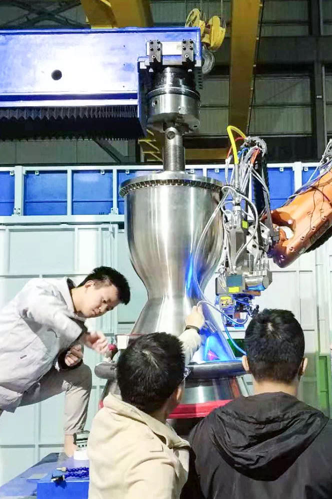 藍(lán)箭與大族激光工程師共同完成首套噴管的夾套焊接工作