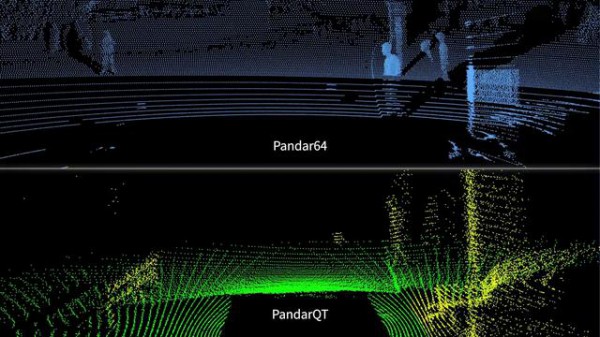 圖為:Pandar64和PandarQT對近距障礙物識別時的對比。
