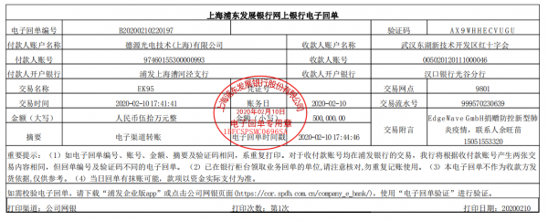 2月10日,為幫助武漢抵御疫情,世界著名超快激光器企業(yè)德國(guó)EdgeWave GmbH委托上海子公司德源光電向武漢市東湖高新開(kāi)發(fā)區(qū)紅十會(huì)捐款五十萬(wàn)人民幣。