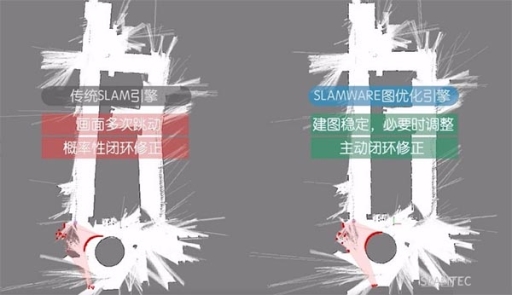 而在SLAM算法中,思嵐科技也推出了全新的SLAM3.0系統(tǒng),即使在復(fù)雜的大場景中,機(jī)器人也能輕松完成定位導(dǎo)航任務(wù)。相對于傳統(tǒng)SLAM,SLAM3.0系統(tǒng)采用了圖優(yōu)化的方式進(jìn)行構(gòu)圖,能實(shí)現(xiàn)百萬平米級別的地圖構(gòu)建能力,同時(shí)擁有主動(dòng)式閉合糾正能力,能很好的消除因長時(shí)間運(yùn)行而導(dǎo)致的里程累計(jì)誤差,成為目前業(yè)內(nèi)最受歡迎的定位導(dǎo)航方式。