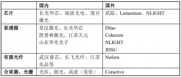 近幾年以來,光纖激光產(chǎn)業(yè)鏈在中國蓬勃發(fā)展,涉及光纖激光器的核心光學(xué)器件如泵浦源、有源光纖、合束器、光柵均在中國實現(xiàn)了批量化生產(chǎn)制造。光纖激光器如銳科激光、創(chuàng)鑫激光、杰普特、GW LASER TECH 等企業(yè)今年來發(fā)展迅速,其中銳科激光、創(chuàng)鑫激光、杰普特先后實現(xiàn)上市或進入上市發(fā)行狀態(tài)。激光設(shè)備商如新起的宏山激光、邦德激光、迅鐳激光及老牌的大族激光、華工激光、奔騰激光等均發(fā)展迅速,快速增長。