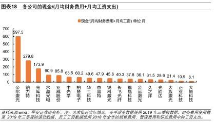 我們分析了A股激光行業(yè)上市公司目前的現(xiàn)金、債務(wù)、存貨情況,認(rèn)為雖然目前復(fù)工和銷售受到一定的阻礙,但在短期內(nèi),大多數(shù)上市公司的現(xiàn)金流風(fēng)險(xiǎn)是可控的。如果做極端假設(shè),停工期間所有經(jīng)營活動(dòng)停止,企業(yè)短期僅需支付財(cái)務(wù)費(fèi)用和員工工資,多數(shù)上市公司的在手現(xiàn)金可維持時(shí)間均在12個(gè)月以上;若考慮房屋租金等支出,情況可能更加嚴(yán)峻一些,但我們判斷1-2個(gè)月的疫情影響并不足以使上市公司面臨重大的現(xiàn)金流困境。