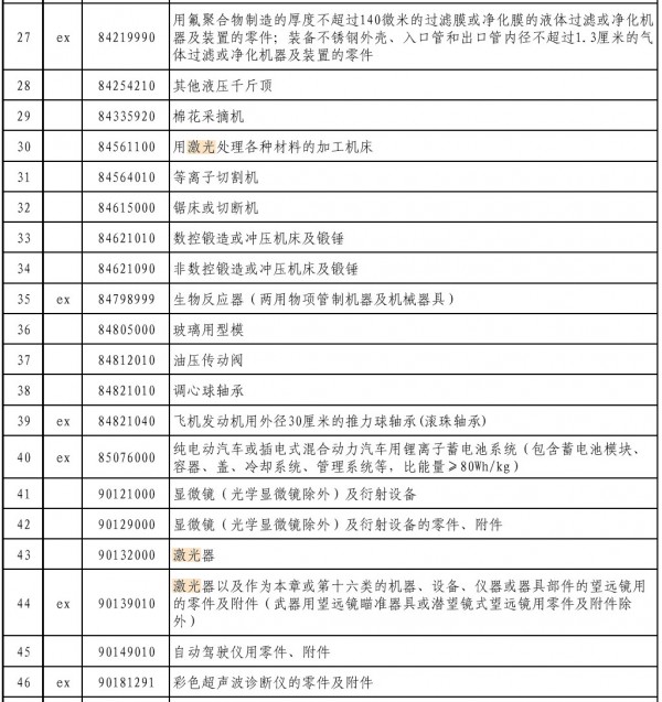 據(jù)查詢,此次對(duì)美加征關(guān)稅商品排除清單中涉及激光行業(yè)的主要有三項(xiàng)如下圖: