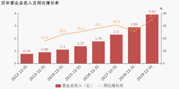 光庫科技于2020年2月28日披露年報,公司2019年實現(xiàn)營業(yè)總收入3.9億,同比增長35.1% ,增幅為7年以來最高值;實現(xiàn)歸屬于母公司所