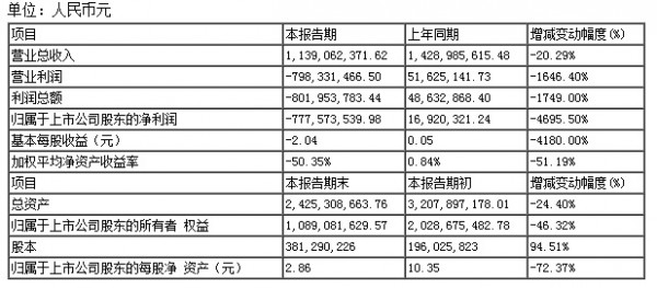 本報(bào)告期末,公司總資產(chǎn)為 242,530.87萬元,較期初減少 24.40%;歸屬于上市公司股東的所有者權(quán)益為 108,908.16萬元,較期初減少 46.32%;歸屬于上市公司股東的每股凈資產(chǎn)為 2.86元,較期初減少 72.37%,主要原因?yàn)閮糍Y產(chǎn)減少及股本增加。