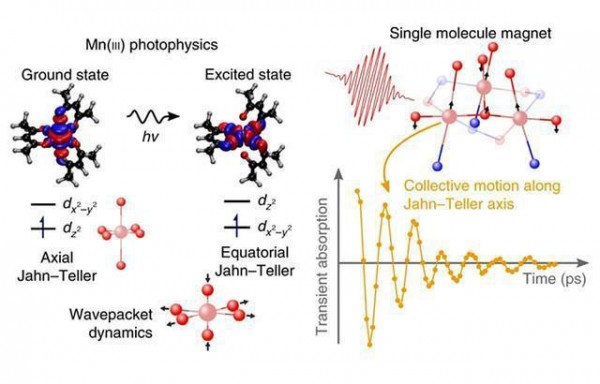 他們發(fā)現(xiàn),使化合物具有磁性的化學(xué)鍵可以通過在激光器上發(fā)出快速脈沖來控制。該化合物主要由元素錳組成,該元素以拉丁詞magnes命名,即磁鐵。
