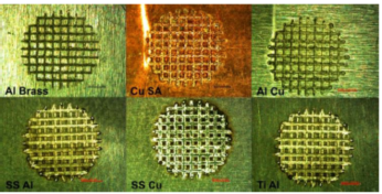 圖4:僅用1秒左右的時間對直徑4mm、網(wǎng)格形狀的不同材料組合完成了微焊接。