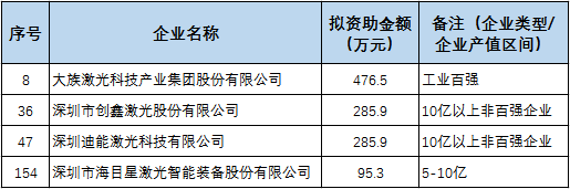 深圳市擬以4億元資助200余家重點(diǎn)工業(yè)企業(yè) 4家激光企業(yè)上榜