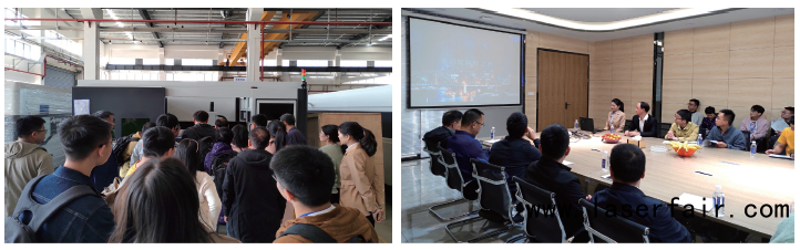 8日下午,光學(xué)會(huì)參觀團(tuán)來到海目星激光智能制造生產(chǎn)基地,近距離參觀和了解高功率板材激光切割智能裝備、全自動(dòng)激光切管機(jī)等。