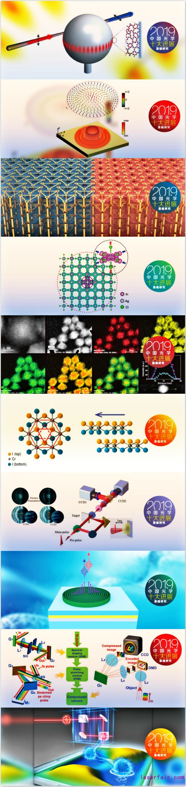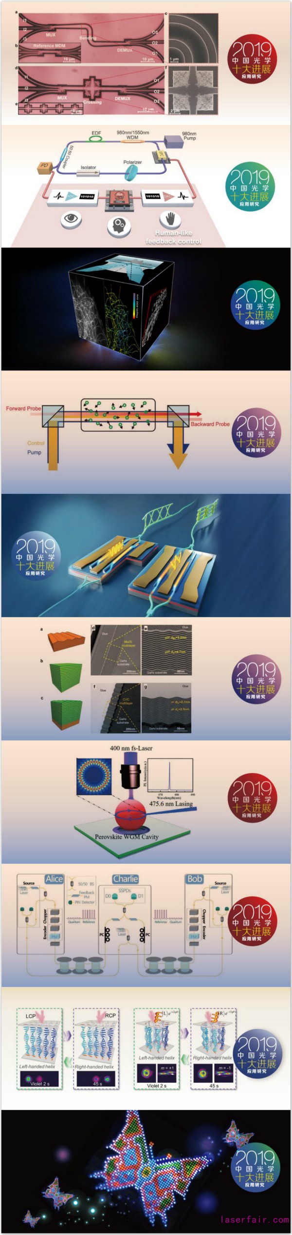 據(jù)悉,2019年度中國光學(xué)十大進(jìn)展分別為:微腔表面對稱性破缺誘導(dǎo)非線性光學(xué),近場光學(xué)旋渦中的光學(xué)斯格明子結(jié)構(gòu),首個三維光學(xué)拓?fù)浣^緣體,高效穩(wěn)定非鉛鹵化物雙鈣鈦礦暖白光,兼具高亮度和高效率的量子點發(fā)光二極管,雙層三碘化鉻中由層間反鐵磁誘導(dǎo)的非互易二次諧波,首次利用臺式化高重頻飛秒激光器驅(qū)動千特斯拉強磁場自組織放大,“三高”量子糾纏光源研究,壓縮超快時間光譜成像術(shù),光的波粒二象性的可控量子疊加等10項基礎(chǔ)研究類成果;可密集集成和任意路由的模分復(fù)用光子芯片,基于類人算法的智能鎖模激光器,基于多角度干涉的三維多色活細(xì)胞超分辨光學(xué)顯微鏡,無磁光場非互易放大、大帶寬、低損耗、高效率、高集成度的硅基電光調(diào)制器,采用反向外延技術(shù)實現(xiàn)晶圓級亞50 nm周期的多層膜光柵器件制備,高性能藍(lán)光單模微納激光,突破線性界限制的光纖量子密鑰分發(fā)系統(tǒng),動態(tài)平面光子元件,基于有機打印微納激光陣列的全色激光顯示等10項應(yīng)用研究類成果。