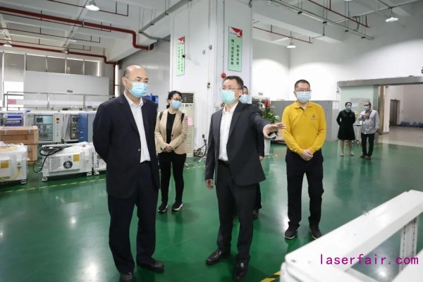 廣東省科技廳廳長(zhǎng)王瑞軍一行來(lái)到大族激光全球生產(chǎn)基地參觀、考察,詳細(xì)了解人員復(fù)工、項(xiàng)目進(jìn)展、新產(chǎn)品研發(fā)情況。陳總工向王廳長(zhǎng)介紹了目前公司的最新研發(fā)成果,涉及3D打印、激光切割、焊接、清洗、熔覆等裝備,激光器、LD部件、功能部件等核心部件研發(fā)、生產(chǎn)、銷(xiāo)售情況。王廳長(zhǎng)在車(chē)間仔細(xì)詢(xún)問(wèn)了相關(guān)產(chǎn)品的技術(shù)特點(diǎn)、工藝特征、應(yīng)用前景等方面,并高度贊賞大族在激光加工領(lǐng)域所取得的成就。