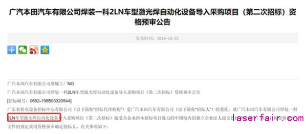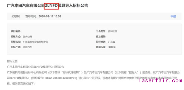 廣汽本田擬投產(chǎn)"2LN"項目新車? 激光焊自動化設(shè)備去年已招標(biāo)