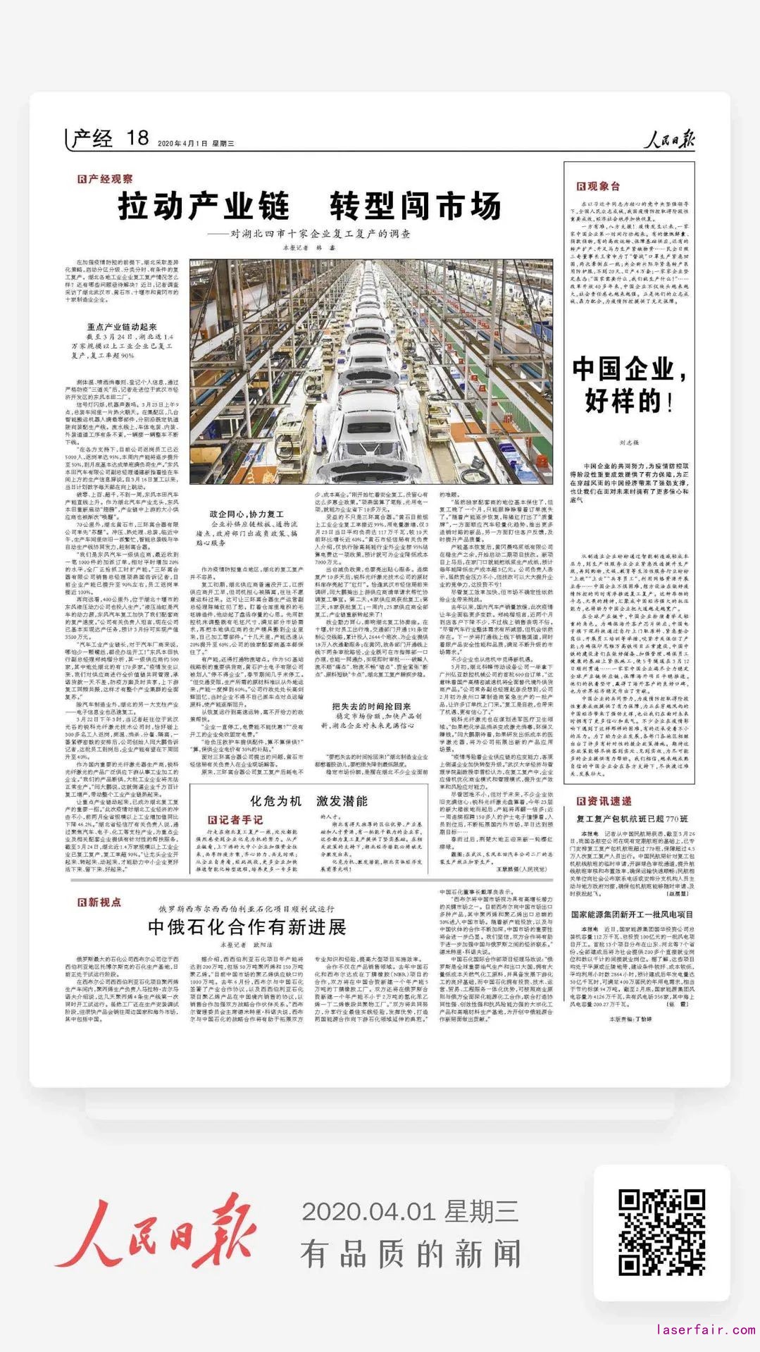 銳科激光復(fù)工復(fù)產(chǎn)獲《人民日報》報道