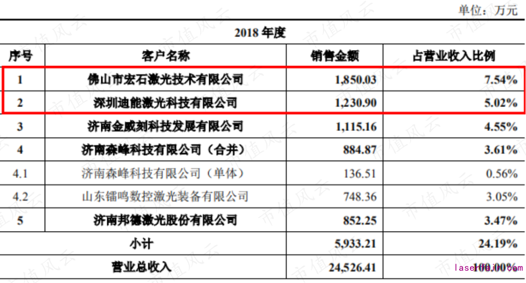 第一梯隊(duì)里,宏石激光連續(xù)三年均是公司最大客戶,迪能激光在2016-2018年也是公司前三大客戶。