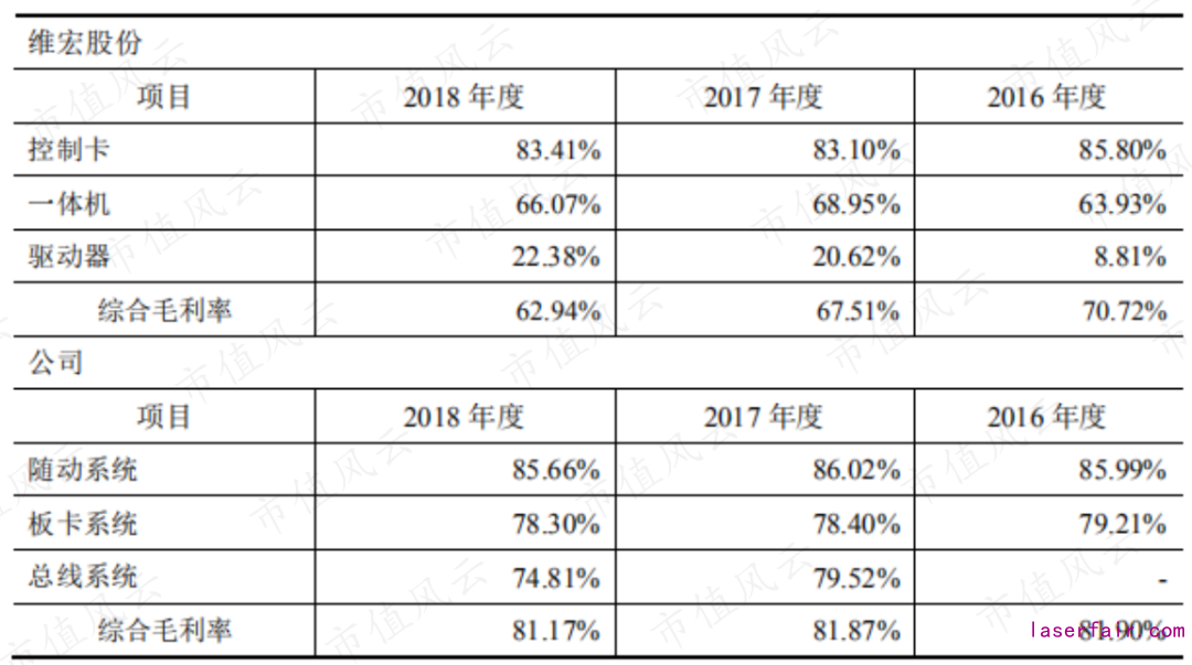 再來看維宏股份,在2018年同比增長15.43%,雖然承接了從柏楚電子轉(zhuǎn)過來的邦德激光的訂單,但增速仍下滑22.44pct。