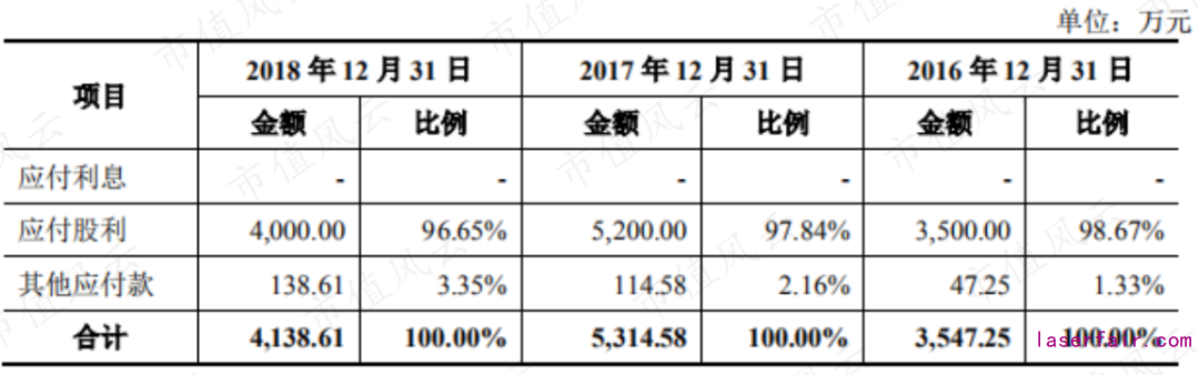 公司負(fù)債主要是應(yīng)付股利,2016年至2018年應(yīng)付股利分別為0.35億、0.52億、0.4億,均為柏楚電子各年現(xiàn)金分紅。