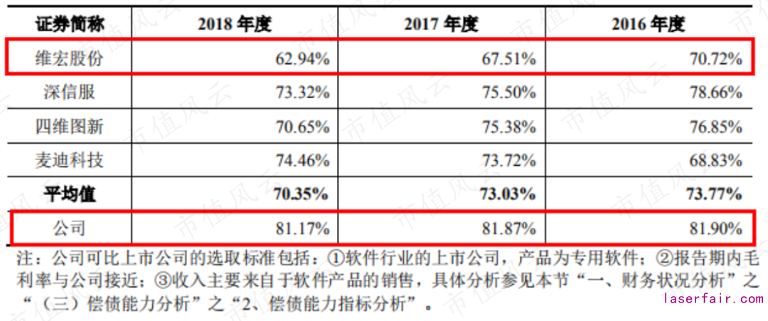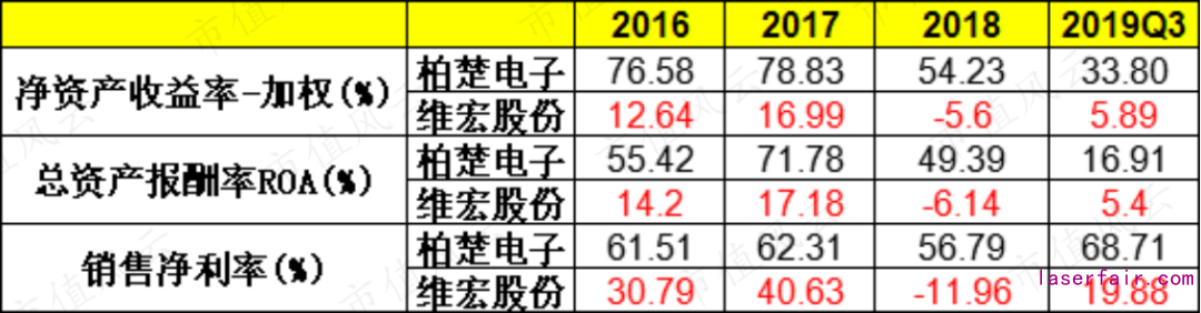 柏楚電子在2019年三季度末ROA為16.91%,而維宏股份上市后的頭兩年ROA分別為14.2%、17.18%,較為接近。