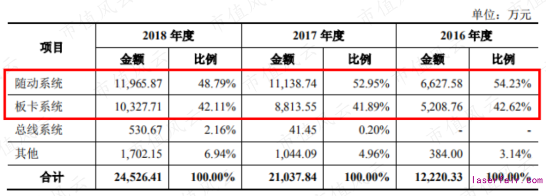 板卡控制系統(tǒng)收入1.03億,占營業(yè)收入比42.11%,2016-2018年占比穩(wěn)定在42%左右。2017年板卡控制系統(tǒng)收入增長69.23%,2018年收入增速下滑至17.05%。