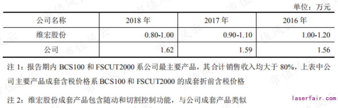 公司主要產(chǎn)品BCS100和FSCUT2000系列的單價(jià)在1.6萬上下,而維宏股份類似成套產(chǎn)品的單價(jià)在1萬左右。