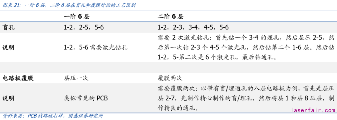 因此可以看出HDI在升級(jí)之路上,反復(fù)的激光鉆孔將一定程度上更加消耗產(chǎn)能,成為PCB廠商的瓶頸工藝。