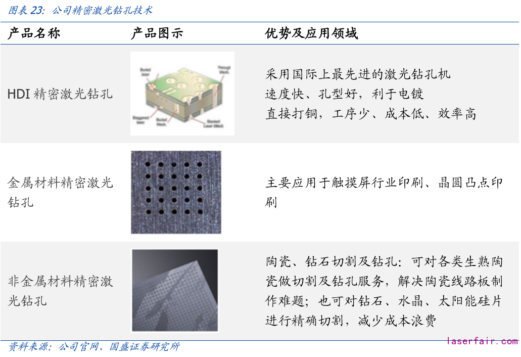 公司的技術(shù)應(yīng)用工藝全程自動(dòng)化,高精度、高效率、高品質(zhì)、低碳綠色環(huán)保,開創(chuàng)了UV激光應(yīng)用技術(shù)的創(chuàng)新應(yīng)用先河。我們認(rèn)為公司作為國內(nèi)龍頭的激光鉆孔外協(xié)服務(wù)商,在FPC業(yè)務(wù)領(lǐng)域的增量規(guī)模相當(dāng)可觀。