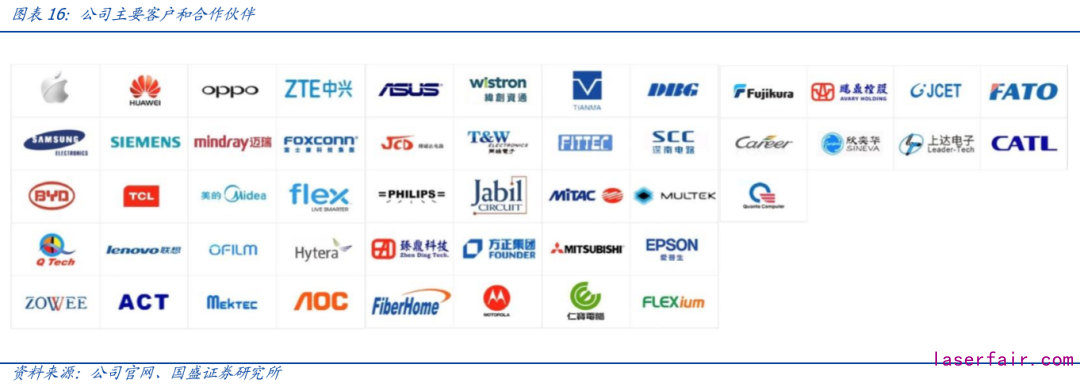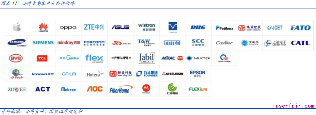 目前,光韻達(dá)已在全國電子產(chǎn)品聚集地建立了30多個(gè)激光加工站,形成了華南、華東、華北三大服務(wù)區(qū),為全國絕大部分客戶提供及時(shí)、方便的個(gè)性化服務(wù)。經(jīng)過多年市場(chǎng)拓展,公司已為華為、中興、富士康、比亞迪(54.570-1.08-1.94%)等1000多家國內(nèi)外電子企業(yè)提供產(chǎn)品和服務(wù),國際EMS50強(qiáng)企業(yè)中有三十多家與公司建立了長期穩(wěn)定的合作關(guān)系。