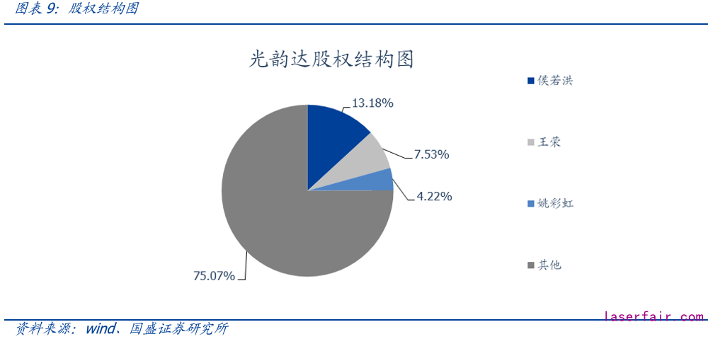 前三大股東中的侯若洪先生、姚彩虹女士為夫妻關(guān)系,為一致行動(dòng)人;公司董事長兼實(shí)際控制人侯若洪先生,清華大學(xué)工學(xué)碩士,擁有豐富的激光應(yīng)用服務(wù)行業(yè)管理經(jīng)驗(yàn),我們認(rèn)為其實(shí)際控制人的身份將會(huì)進(jìn)一步幫助公司在其管理經(jīng)營上的戰(zhàn)略的實(shí)施。