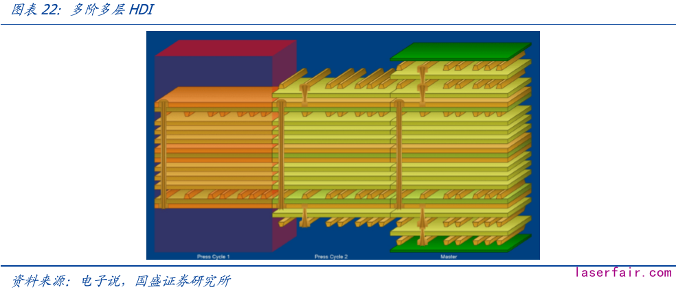 高端HDI供需緊張,市場(chǎng)空間可觀。隨著整體消費(fèi)電子主板向高端進(jìn)階后,高端HDI的產(chǎn)能卻并未有較大的提升,或者說較多國內(nèi)廠商目前仍然不具備高端HDI的批量生產(chǎn)工藝,我們認(rèn)為HDI的領(lǐng)先廠商將會(huì)從中受益,與此同時(shí),擁有強(qiáng)勁PCB激光鉆孔技術(shù)的光韻達(dá)也將受益。