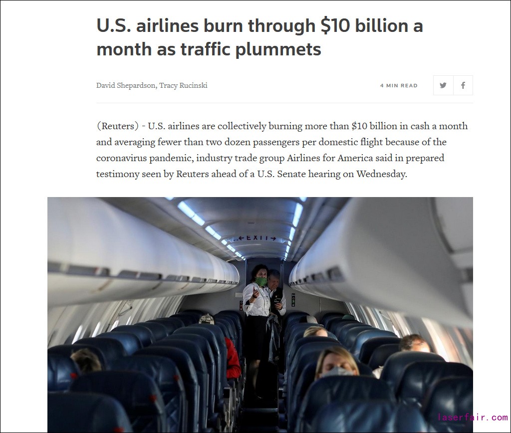 在這份提交給參議院的證詞中,美國航空協(xié)會表示,受新冠疫情影響,美國航空公司每個月加起來要白白消耗多達(dá)100億美元現(xiàn)金以維系生存。