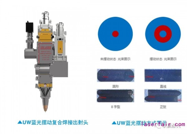 藍光擺動復(fù)合焊接技術(shù)是在紅外激光和藍光激光同軸復(fù)合的基礎(chǔ)上,使紅外激光通過擺動電機單元,通過程序控制電機使紅外激光產(chǎn)生一定擺動直徑、擺動頻率、擺動軌跡的運動。
