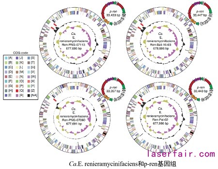 借助易于識(shí)別的大海綿細(xì)菌細(xì)胞的球形形狀,使用MMI CellCut PLus激光捕獲顯微切割(LCM)從稀釋的Ren-Bali-16-03海綿勻漿中分離出100個(gè)此類單細(xì)胞。然后,從捕獲的細(xì)胞中提取并測(cè)序了DNA,并與從捕獲的背景膜中分離出的DNA作為對(duì)照進(jìn)行了比較,分析了它們的宏基因組。結(jié)果明確表明Ca. E.?renieramycinifaciens帶有p-ren,并將renieramycin生物堿的產(chǎn)生進(jìn)一步局限在海綿狀細(xì)菌細(xì)胞中。因此,作者提出術(shù)語(yǔ)“化學(xué)細(xì)菌細(xì)胞”來(lái)描述海綿細(xì)胞,在該海綿細(xì)胞中,細(xì)胞內(nèi)細(xì)菌共生體會(huì)產(chǎn)生化學(xué)防御分子。