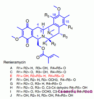 海洋海綿是微生物多樣性最豐富的后生動(dòng)物宿主之一。它們被認(rèn)為是最原始的生物,是研究微生物與宿主相互作用的良好模型系統(tǒng)。海綿中的共生菌會(huì)產(chǎn)生許多具有不同生物活性的復(fù)雜代謝產(chǎn)物,其中包括未被充分研究的海綿代謝產(chǎn)物renieramycin生物堿。迄今為止,已經(jīng)發(fā)現(xiàn)了約30種renieramycin生物堿,它們發(fā)揮了廣泛的抗微生物和細(xì)胞毒性活性,這些活性在生態(tài)和治療上都具有重要意義。從生物合成的角度來(lái)看,對(duì)renieramycin生物堿的了解還很少。renieramycin生物堿核心結(jié)構(gòu)類似于四氫呋喃類的黃霉素,由于其組分較為廣泛,引發(fā)了作者的研究興趣,想確定最原始的后生動(dòng)物:海洋海綿中的renieramycin生物堿生產(chǎn)的來(lái)源和分子基礎(chǔ)。