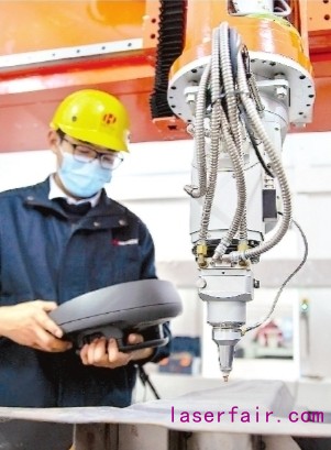 “華工激光”三維五軸激光切割機(jī)正在作業(yè)