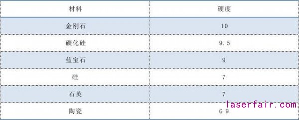 表一 常見(jiàn)材料的莫氏硬度