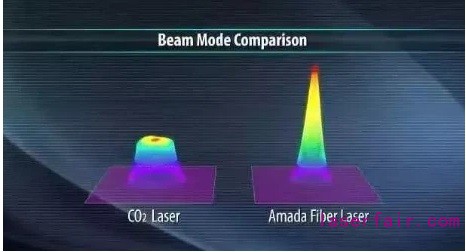 CO2激光(左)和光纖激光(右)波長