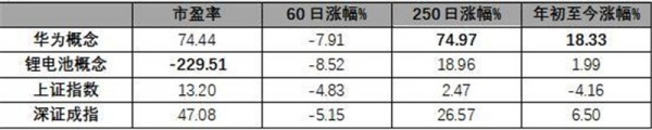 從二級(jí)市場(chǎng)表現(xiàn)來看,華為概念250日漲幅以及年內(nèi)漲幅均大幅度跑贏滬、深兩指。而從60日漲幅來看,聯(lián)贏激光所處的華為概念板塊與鋰電池概念板塊表現(xiàn)較弱,整體跌幅高于滬、深兩指。