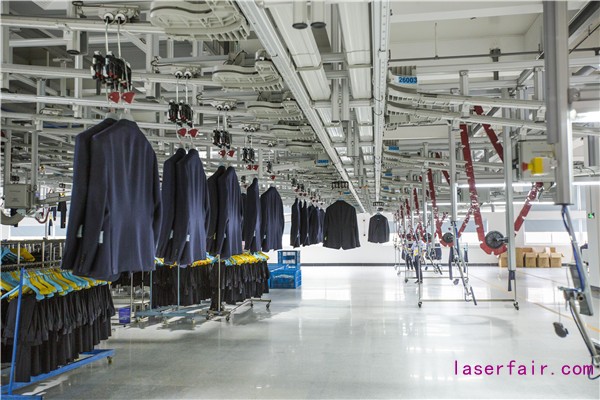 走進(jìn)位于寧波市海曙區(qū)的雅戈?duì)栁鞣a(chǎn)車間,一股“智造”新風(fēng)撲面而來:占地面積1萬(wàn)平方米的車間里,西服、西褲像接受檢閱的士兵整齊列隊(duì),由吊掛系統(tǒng)運(yùn)送到各個(gè)工位;在工位上,每個(gè)工人都會(huì)按照面前平板電腦提供的工藝提醒,分別對(duì)西服面料進(jìn)行收省拼側(cè)片、前片推門等工序;此后,吊掛系統(tǒng)會(huì)根據(jù)衣架上的二維碼對(duì)西服和西褲進(jìn)行掃描配對(duì),確認(rèn)顏色、尺碼無(wú)誤后,再成套運(yùn)送到倉(cāng)庫(kù)。